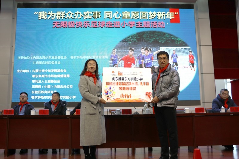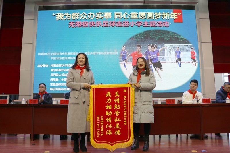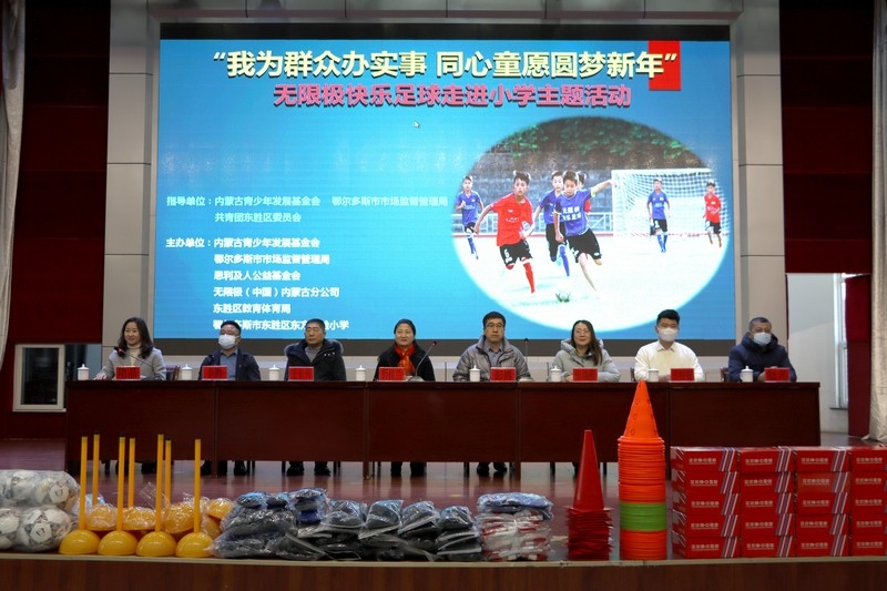 北疆新聞網(wǎng)、北疆新聞APP、北疆云消息 12月3日,思利及人公益基金會、無限極(中國)內(nèi)蒙古分公司攜手內(nèi)蒙古青少年發(fā)展基金會、鄂爾多斯市市場監(jiān)督管理局、共青團東勝區(qū)委員會、東勝區(qū)教育體育局、無限極內(nèi)蒙古志愿者協(xié)會走進內(nèi)蒙古鄂爾多斯市東勝區(qū)東方實驗小學,開展“我為群眾辦實事 同心童愿圓夢新年”無限極快樂足球慰問公益活動。為學校的孩子們送上了一份特別的禮物,由“無限極快樂足球”公益項目提供的足球、球服、球鞋、繞桿、訓練桶等足球裝備和訓練器材。孩子們在收到捐贈后,露出開心燦爛的笑容。