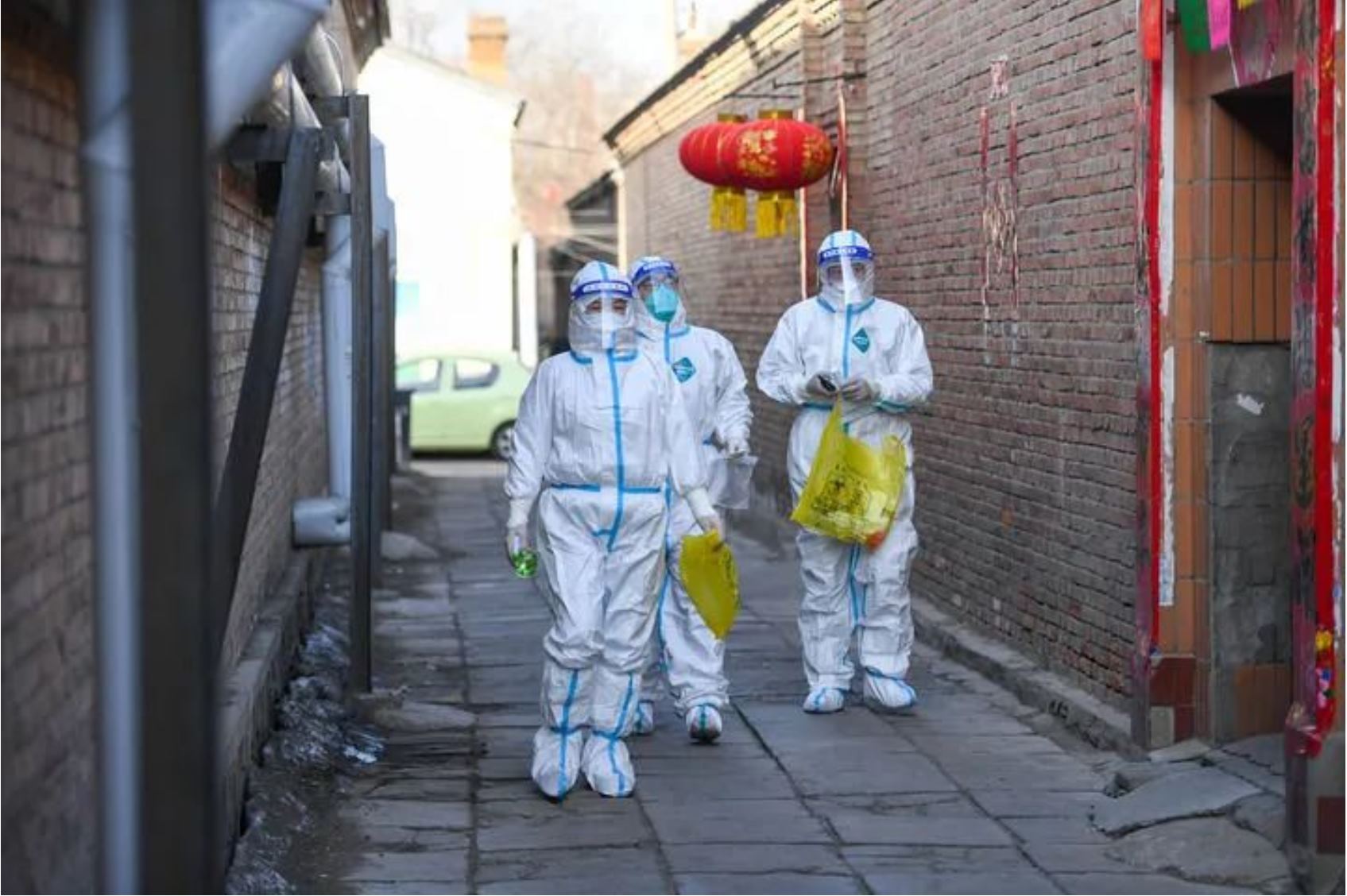 ↑3月6日,在呼和浩特市賽罕區(qū)東瓦窯社區(qū),網(wǎng)格員(右一)輔助醫(yī)務(wù)工作者為次密接群眾上門做核酸檢測。
