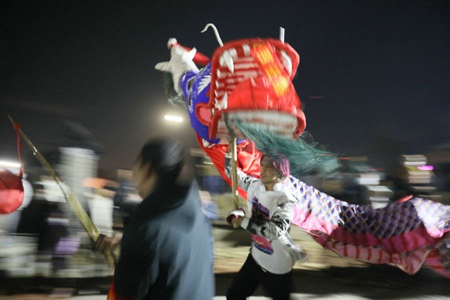 2月6日(農(nóng)歷正月十六)晚,黃河岸邊的古村落——呼和浩特市托克托縣雙河鎮(zhèn)河口村,一派熱鬧景象,當(dāng)晚的社火舞龍表演,吸引了周邊眾多居民前來(lái)圍觀。
