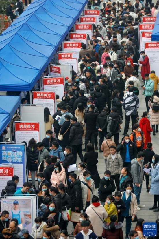 2月17日,人們在中國成都人力資源服務產(chǎn)業(yè)園查看招聘信息,尋找工作機會。