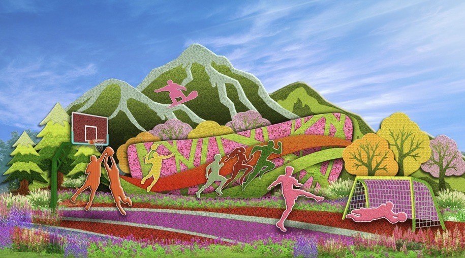 6,西單東北角的“全民健身”花壇頂高8.5米,以豐富多彩的全民健身為題材,配以籃球、羽毛球、跑步、滑雪等運(yùn)動(dòng)場(chǎng)景,寓意全民健身共享美好生活。