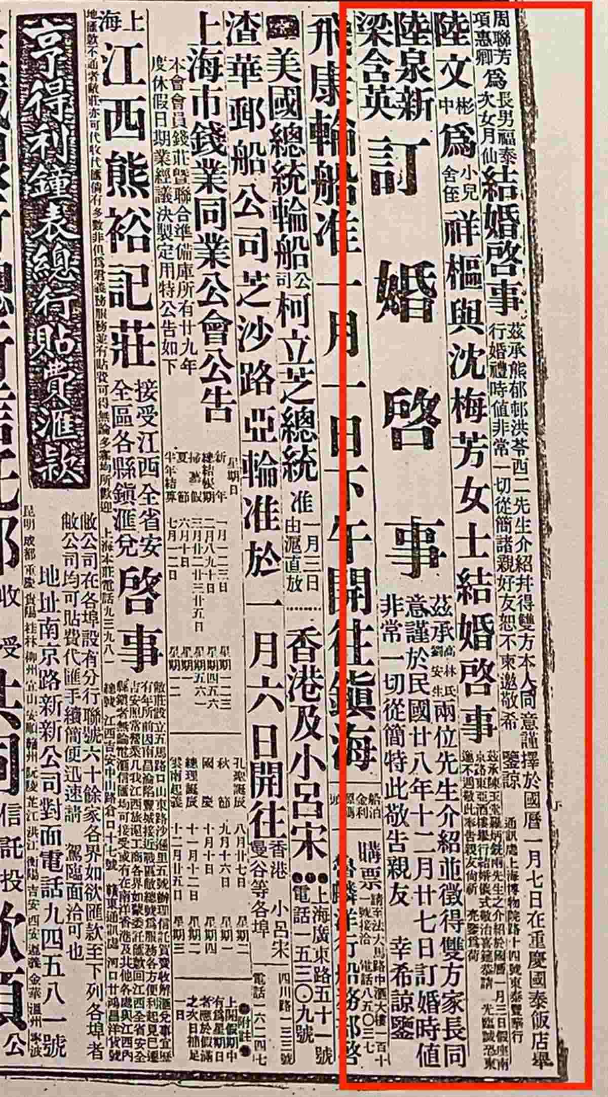 據(jù)了解,登報(bào)結(jié)婚最早在民國(guó)風(fēng)行。當(dāng)時(shí),婚姻法和婚姻登記制度并不完善,于是結(jié)婚時(shí)在報(bào)紙上公示成為一種約定俗成的習(xí)慣。一來(lái)知會(huì)了遠(yuǎn)近親友,二來(lái)有一定法律效力,日后可以作為憑證。三來(lái)報(bào)紙便于長(zhǎng)久保存,更具紀(jì)念意義。