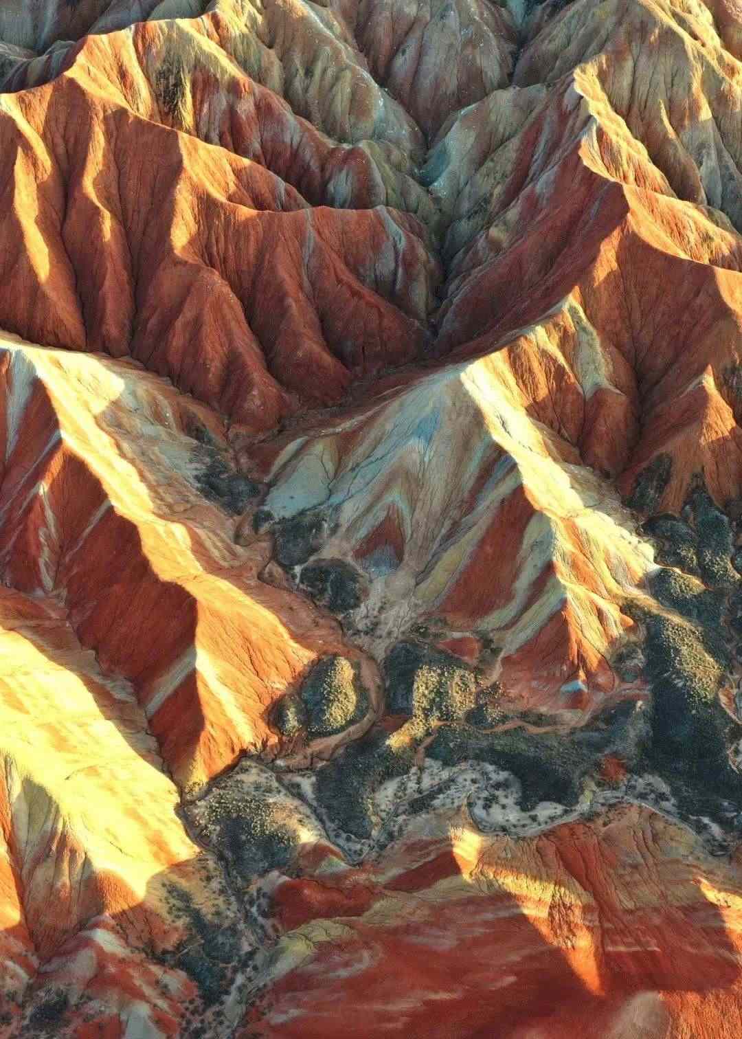 據(jù)了解,該景區(qū)內(nèi)的丹霞地貌形成于侏羅紀白堊紀時期,表面由細砂巖和泥質(zhì)巖構(gòu)成。經(jīng)專家研究考證,彩色丘陵地層的形成和誕生是以百萬年為地貌單元,是不可再生、不可復制的地質(zhì)遺跡。