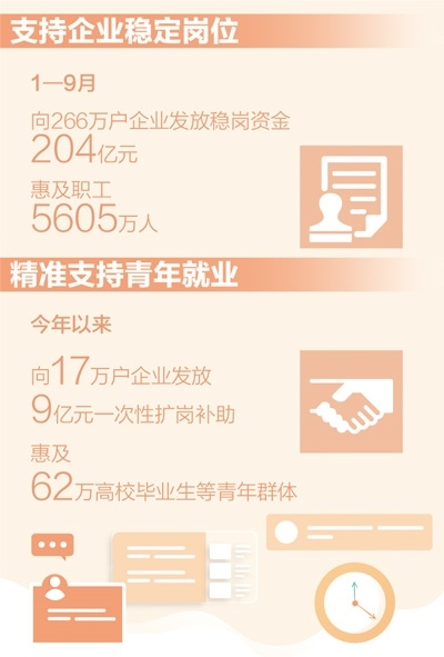二是繼續(xù)對不裁員少裁員的參保企業(yè)實施穩(wěn)崗返還政策。擴大資金使用范圍,在現(xiàn)行職工生活補助、繳納社會保險費、轉(zhuǎn)崗培訓(xùn)、技能提升培訓(xùn)等穩(wěn)定就業(yè)崗位支出的基礎(chǔ)上,新增降低生產(chǎn)經(jīng)營成本支出,進一步支持企業(yè)發(fā)展。1—9月,各地通過“免申即享”的方式,向266萬戶企業(yè)發(fā)放穩(wěn)崗資金204億元,惠及職工5605萬人,有效支持企業(yè)穩(wěn)定就業(yè)崗位。