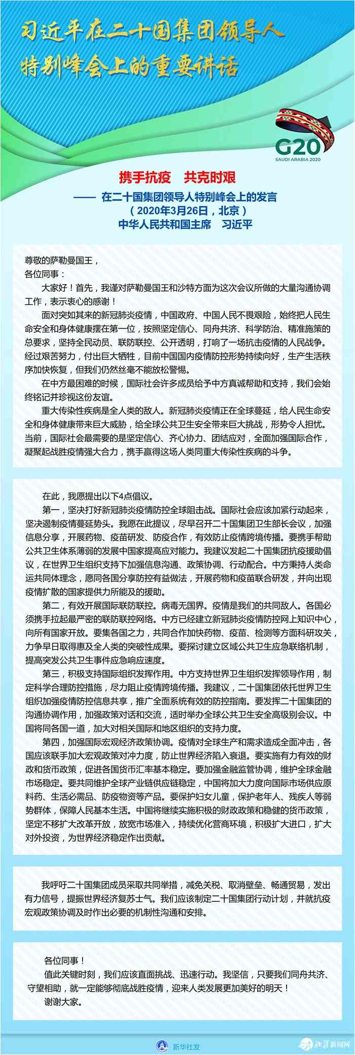 二十國集團領(lǐng)導人應對新冠肺炎特別峰會由沙特主辦,以視頻方式舉行,旨在推動全球合作應對疫情、穩(wěn)定世界經(jīng)濟。