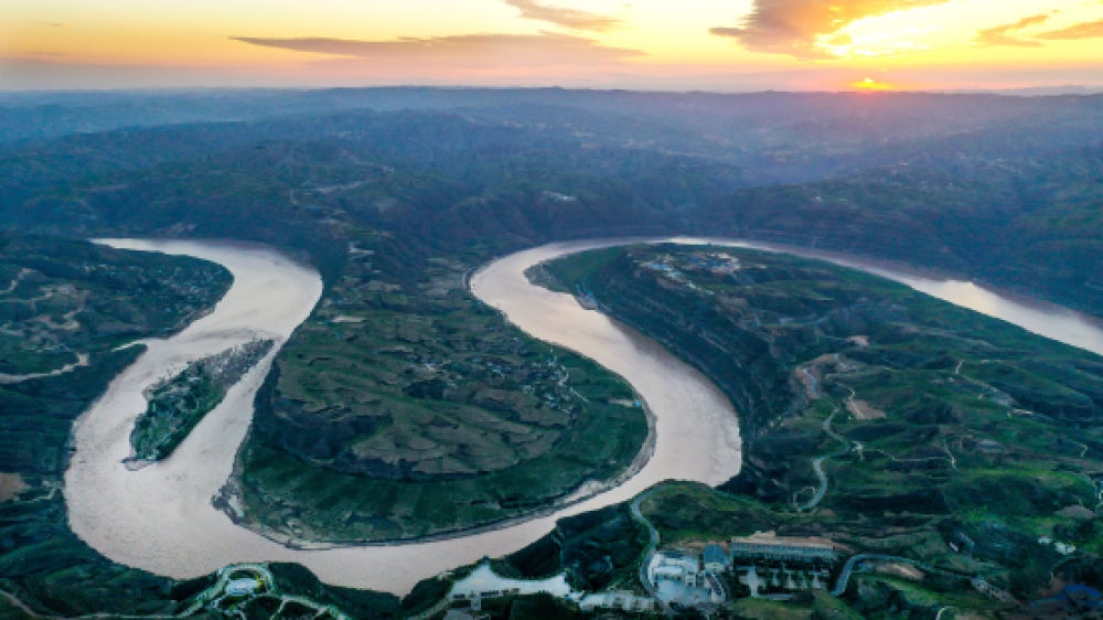 △2019年8月14日,朝霞下的黃河乾坤灣景色。
