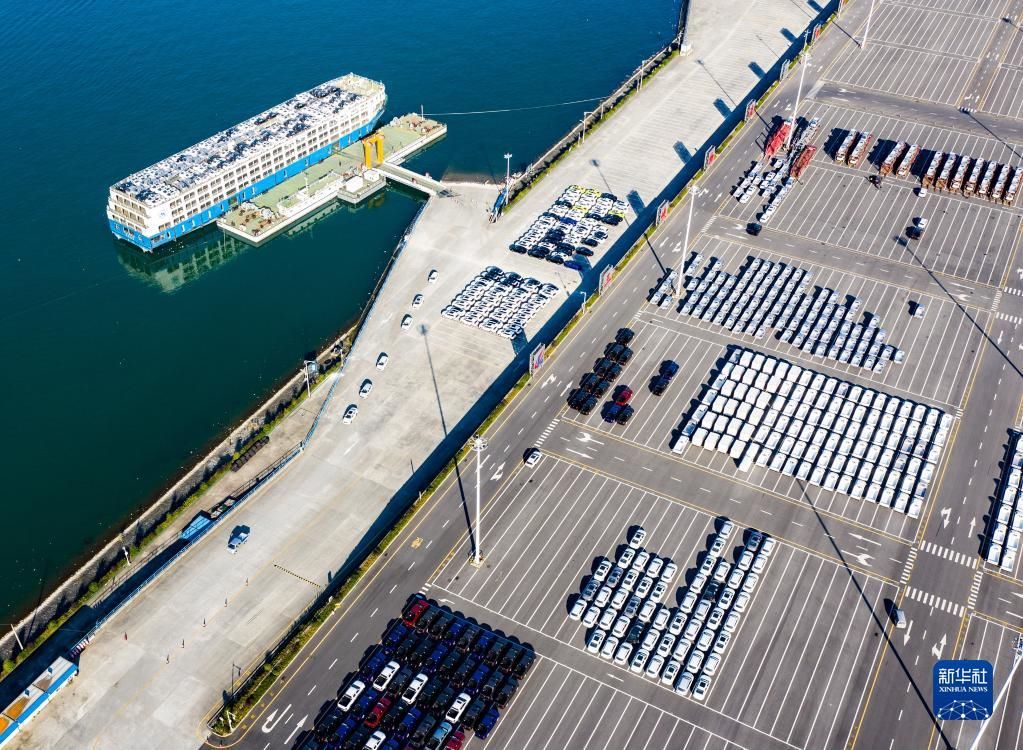 這是三峽庫(kù)區(qū)湖北省宜昌市秭歸縣秭歸港車輛分撥轉(zhuǎn)運(yùn)現(xiàn)場(chǎng)(2020年11月13日攝,無(wú)人機(jī)照片)。新華社發(fā)(鄭家裕攝)