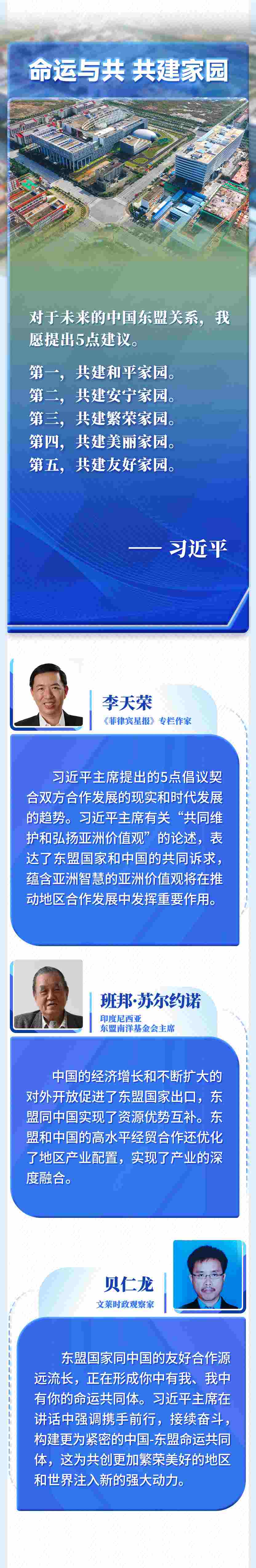 第一,共建和平家園。沒有和平,一切都無從談起。和平是我們最大的共同利益,也是各國人民最大的共同期盼。我們要做地區(qū)和平的建設者和守護者,堅持對話不對抗、結伴不結盟,攜手應對威脅破壞和平的各種負面因素。我們要踐行真正的多邊主義,堅持國際和地區(qū)的事大家商量著辦。中方堅決反對霸權主義和強權政治,愿同周邊鄰國長期友好相處,共同維護地區(qū)持久和平,絕不尋求霸權,更不會以大欺小。中方支持東盟建設無核武器區(qū)的努力,愿盡早簽署《東南亞無核武器區(qū)條約》議定書。