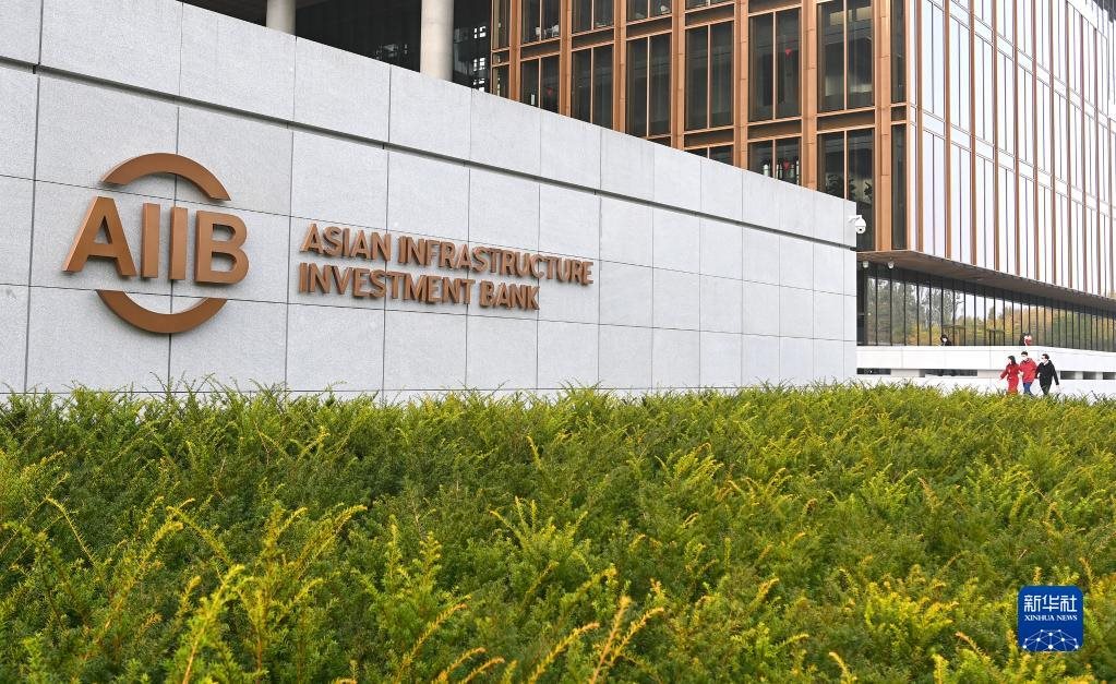 這是2021年10月25日拍攝的亞洲基礎(chǔ)設(shè)施投資銀行(亞投行)標志。新華社記者 李賀 攝