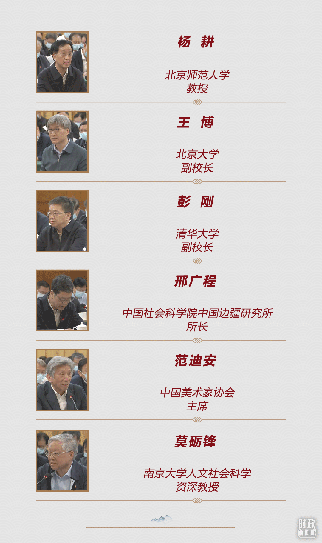 6月2日下午,考察結(jié)束后,習(xí)近平總書記在中國(guó)歷史研究院出席文化傳承發(fā)展座談會(huì)。這也是近一個(gè)月以來(lái)總書記出席的第三場(chǎng)座談會(huì)。6位專家學(xué)者在會(huì)上發(fā)言。
