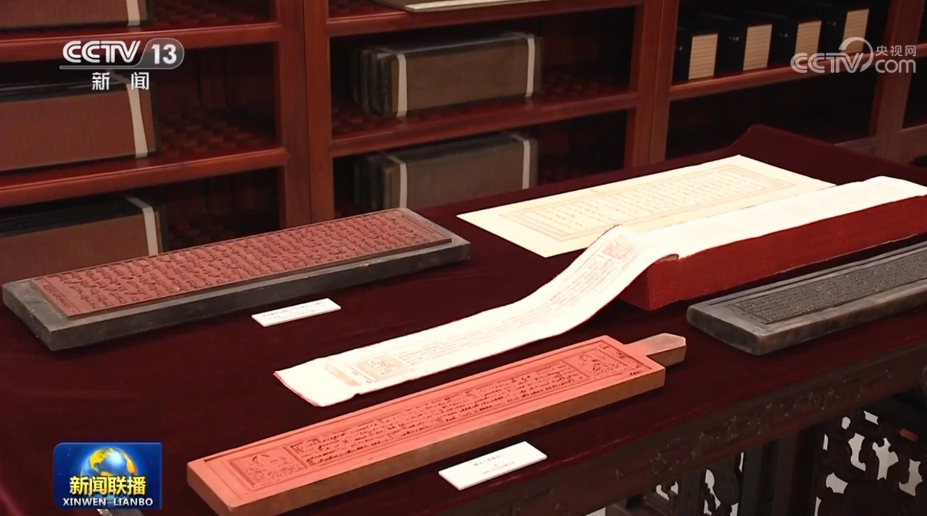 ▲圖為習(xí)近平總書(shū)記參觀的“漢藏蒙滿文大藏經(jīng)雕版合璧”庫(kù)展展品。