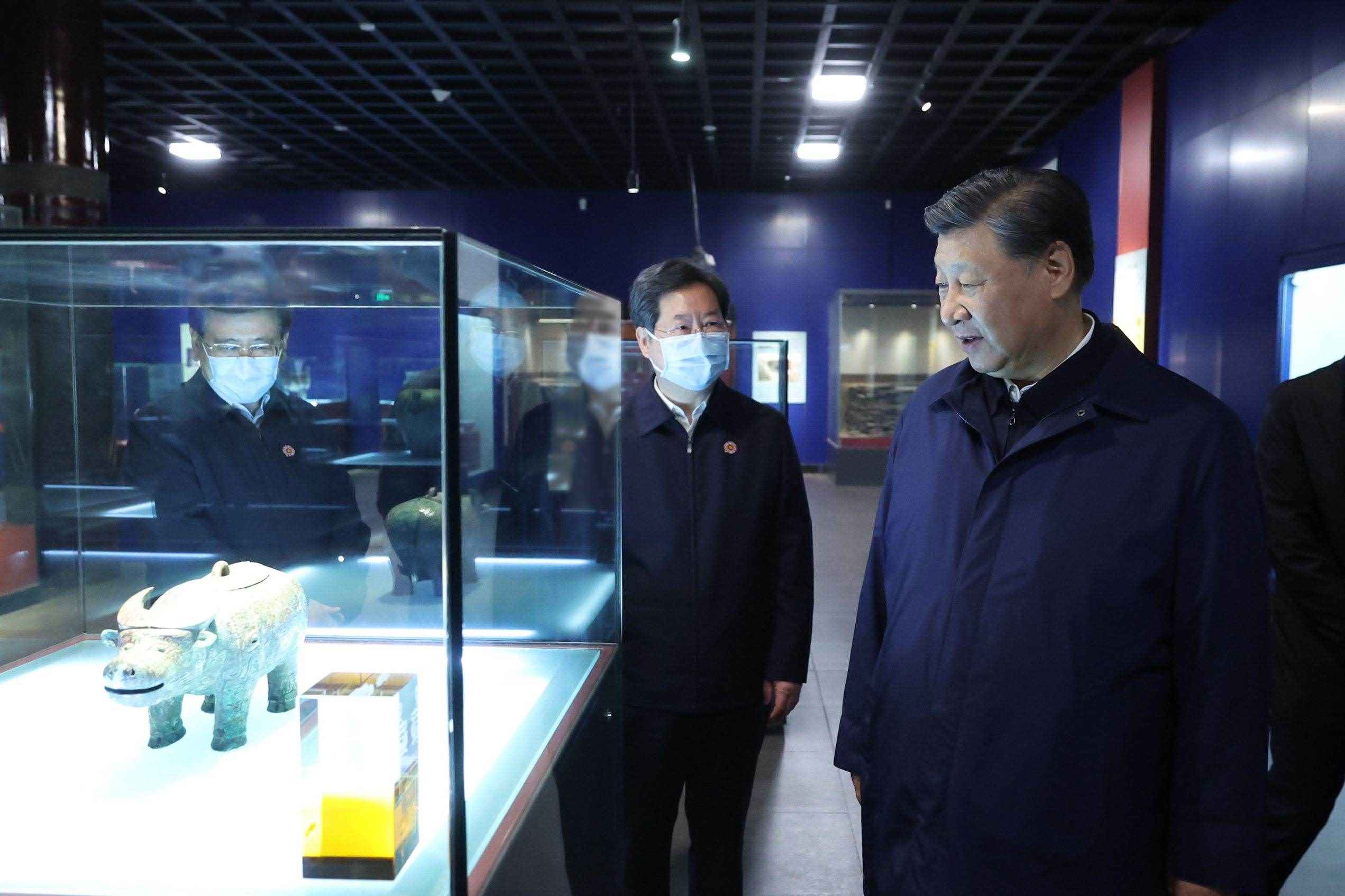 ▲2022年10月28日,習(xí)近平總書記在河南省安陽市殷墟博物館考察。