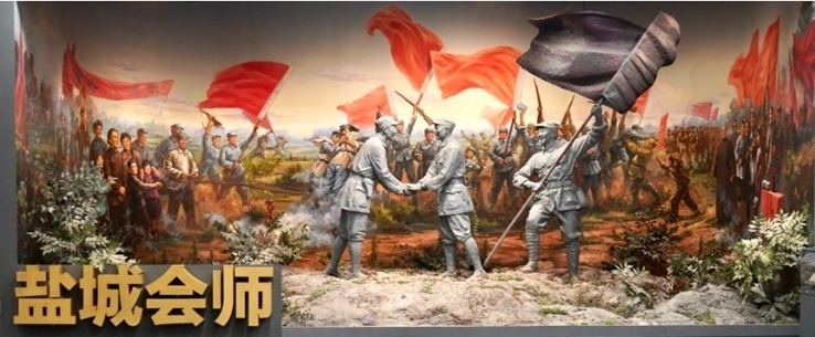 在鹽城市建軍路與解放路交匯處,矗立著一尊新四軍戰(zhàn)士的雕像“大銅馬”。這不僅是鹽城的城市地標,更是鹽城人的精神地標。鹽城是新四軍軍部重建地,也是鐫刻著紅色印記的英雄城。