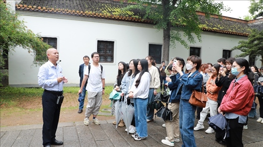湖南長沙岳麓書院內(nèi),古木參天,景色怡人,前來參觀游覽的游客絡(luò)繹不絕。人們不時可以看到一群群學(xué)生圍繞在老師周圍,聆聽歷史文化和革命文化知識。這是湖南大學(xué)馬克思主義學(xué)院的“移動”思政課。中共湘區(qū)委員會舊址清水塘、李達(dá)紀(jì)念館、位于湖南省芷江縣城東的芷江受降地等紅色場館,都成為了“移動”思政課教學(xué)的陣地。