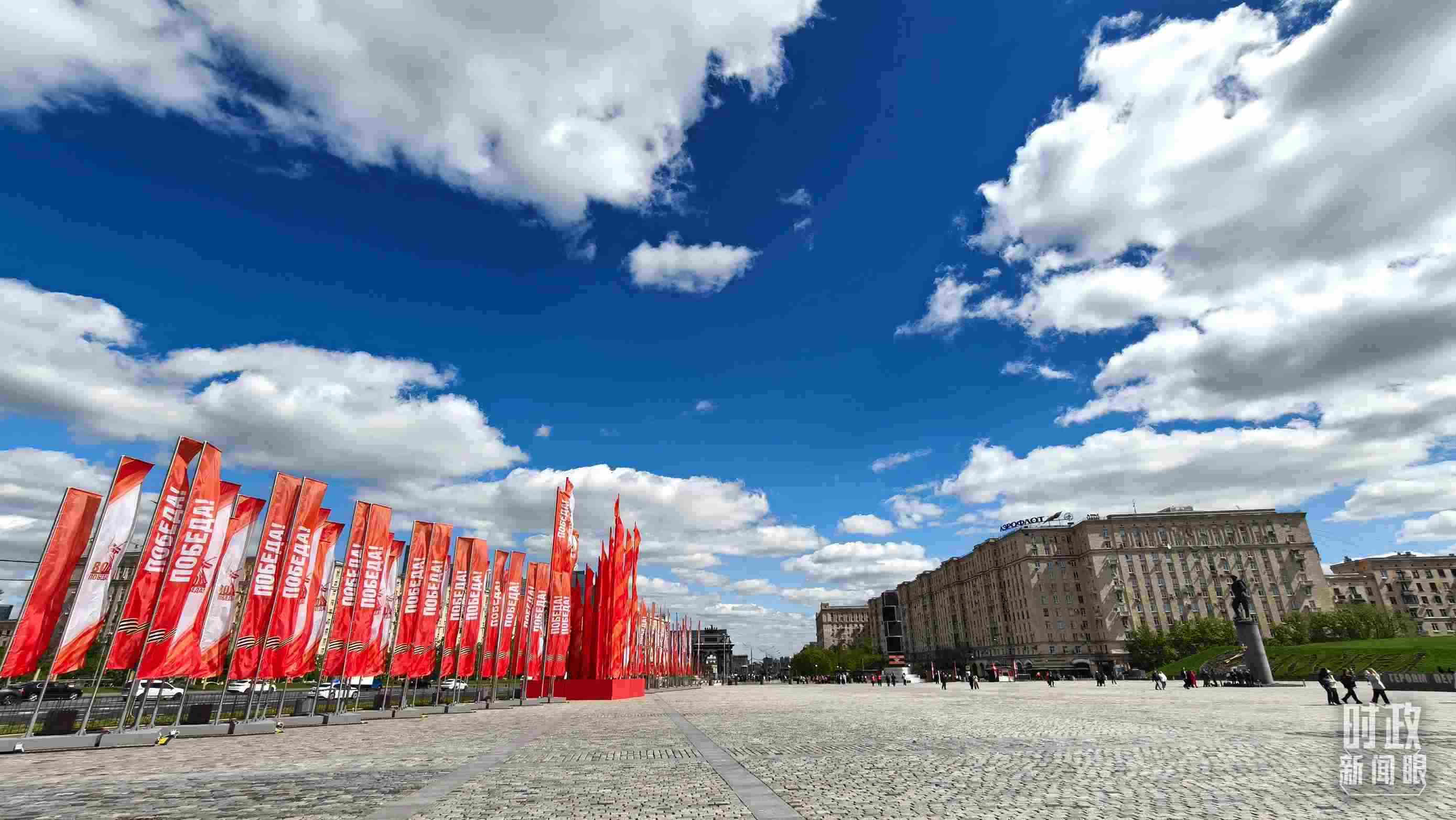 △莫斯科街頭的勝利日旗幟。(總臺央視記者楊波拍攝)