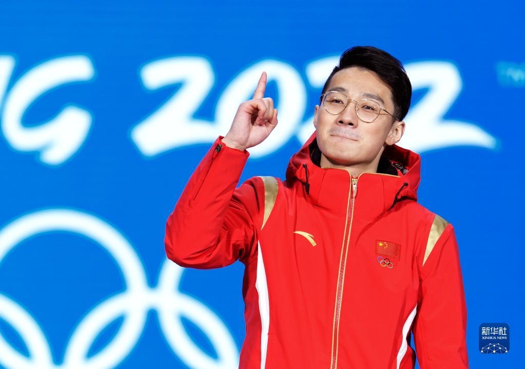 當(dāng)日,北京2022年冬奧會(huì)短道速滑男子1000米獎(jiǎng)牌頒發(fā)儀式在北京賽區(qū)頒獎(jiǎng)廣場舉行。