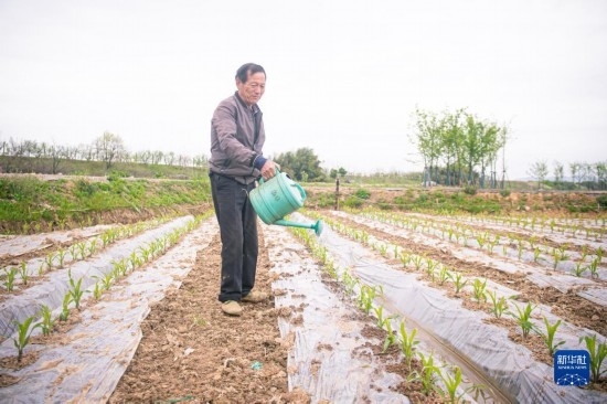 3月29日,在諸暨市楓橋鎮(zhèn)杜黃新村的農(nóng)耕體驗(yàn)研學(xué)基地,村民為新苗澆水。近年來,農(nóng)旅融合發(fā)展給當(dāng)?shù)卮迕裥略隽?0多個就業(yè)崗位。