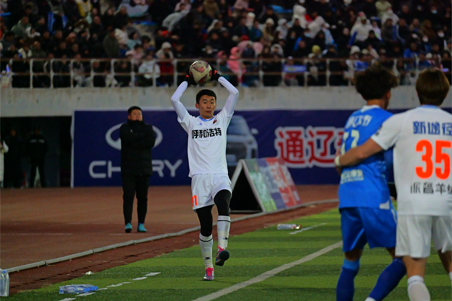 比賽伊始,兩隊直接開啟高速對抗模式,攻防節(jié)奏緊湊,轉換效率拉滿,為現(xiàn)場4萬余觀眾呈現(xiàn)了開局即高潮的對決。雙方輪番發(fā)起高強度攻勢,給對方球門制造實質(zhì)性威脅,呼和浩特隊小組賽表現(xiàn)亮眼的16號孟克特爾文聚集中路攻堅,31號外援馬庫斯則鎮(zhèn)守左路策應,左路突破加中路沖擊向通遼隊禁區(qū)施壓,然而未能將攻勢轉化為進球,兩隊以0:0的比分進入中場休息。