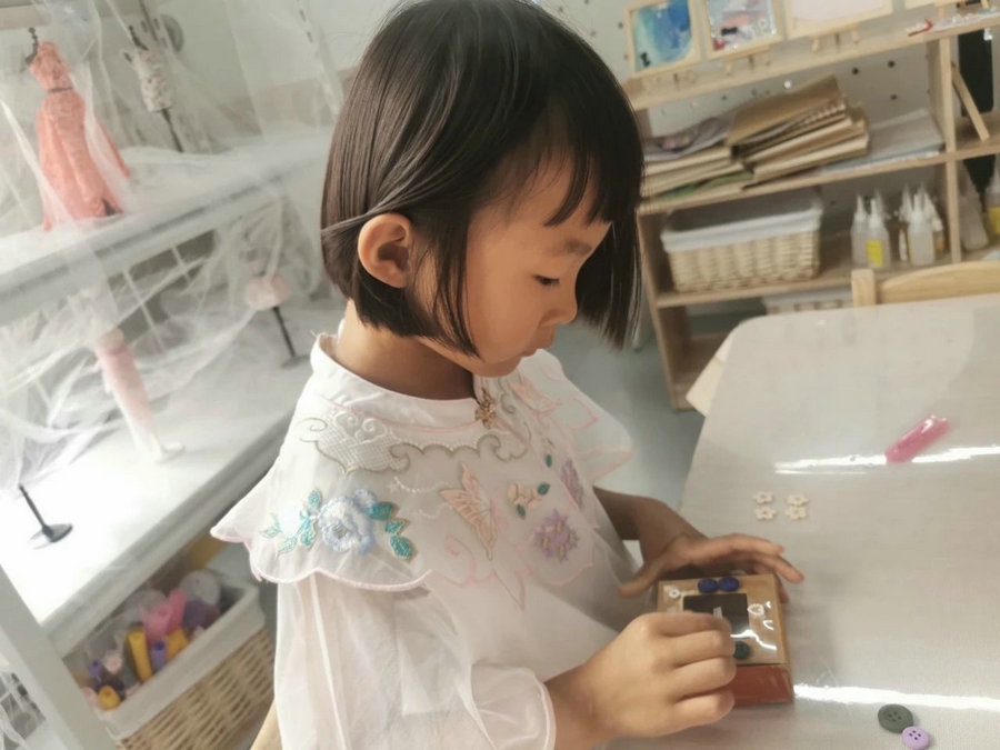 在布衣樣區(qū)域,小朋友親自制作艾草手工皂,通過繪畫艾草圖標(biāo)設(shè)計(jì)禮盒、制作艾草工皂,用做好的艾草洗手,感受成果的喜悅。(記者 楊凈毓)