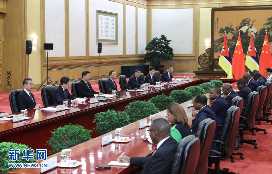 國(guó)家主席習(xí)近平24日在人民大會(huì)堂會(huì)見(jiàn)莫桑比克總統(tǒng)紐西。