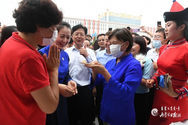 7月25日,自治區(qū)黨委副書(shū)記、自治區(qū)主席布小林在調(diào)研2020年內(nèi)蒙古自治區(qū)民族手工藝和文創(chuàng)旅游精品展示活動(dòng)時(shí)來(lái)到內(nèi)蒙古味道展示區(qū)。內(nèi)蒙古日?qǐng)?bào)社融媒體記者 韓卿立 攝