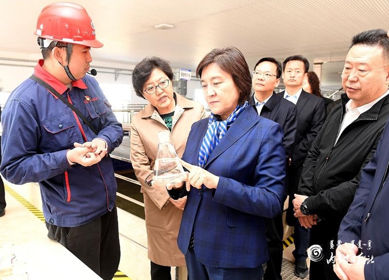 布小林十分關心沿黃地區(qū)的水資源節(jié)約集約高效利用和生態(tài)保護建設。她來到烏海市綠色生態(tài)農(nóng)業(yè)產(chǎn)業(yè)園,走進綠農(nóng)永勝農(nóng)民專業(yè)合作社陽光大棚葡萄基地,詳細了解葡萄種植需水和高效節(jié)水設施的使用情況;在烏海市啟源供水有限公司,實地查看凈水工藝流程及針對黃河水特點采取的處理措施。布小林指出,我區(qū)沿黃地區(qū)大多水資源匱乏,生態(tài)保護和經(jīng)濟社會發(fā)展面臨水資源短缺的剛性約束。抓好水資源節(jié)約集約高效利用,是推進黃河流域生態(tài)保護和高質(zhì)量發(fā)展的重中之重。要牢固樹立節(jié)水意識,堅持以水定城、以水定地、以水定人、以水定產(chǎn),合理規(guī)劃人口、城市和產(chǎn)業(yè)發(fā)展,大力發(fā)展節(jié)水產(chǎn)業(yè)和技術(shù),實施全社會節(jié)水行動,推動用水方式由粗放向節(jié)約集約轉(zhuǎn)變。要大力發(fā)展循環(huán)經(jīng)濟,結(jié)合技術(shù)改造和產(chǎn)品更新?lián)Q代,組織實施重大節(jié)水和水循環(huán)利用示范工程,提高水資源重復利用率。