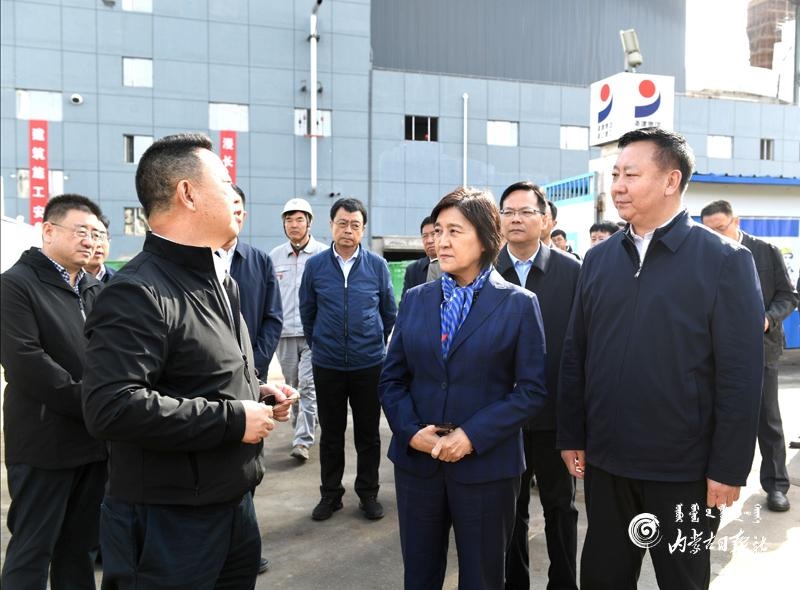 10月11日,自治區(qū)黨委副書記、自治區(qū)主席布小林來到烏海市烏達區(qū)內(nèi)蒙古興發(fā)科技有限公司有機硅新材料一體化循環(huán)項目現(xiàn)場,深入了解企業(yè)技術(shù)路線、環(huán)保裝置等方面情況。內(nèi)蒙古日報記者 韓卿立 攝