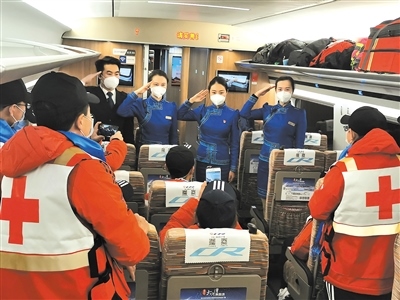 作為連通全國的運輸動脈,在完成常規(guī)運輸任務的基礎上,高鐵列車還承擔起了運送醫(yī)務人員、醫(yī)療用品和保障物資的特別任務。內(nèi)蒙古援鄂醫(yī)療隊員兩批次乘坐G2438次列車從北京中轉(zhuǎn)赴武漢;五批次乘坐“草原動車”由鄂爾多斯回到呼和浩特?!八陀⑿鄢稣鳎佑⑿刍丶摇保叽芜\輸任務,高鐵車隊以最高禮遇和精心的服務,贏得醫(yī)療隊員們的紛紛好評?!爸x謝你們,出發(fā)時為我們送行,歸來時為我們唱起凱旋之歌。”醫(yī)療隊隊員李紅娟緊緊握住列車長張雨的手說。