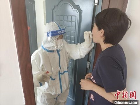 圖為工作人員上門為王璧做核酸檢測。 二連浩特市公安局供圖
