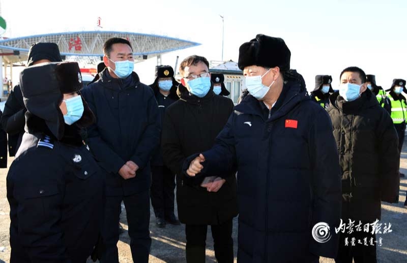 2月4日,自治區(qū)黨委書記、人大常委會(huì)主任石泰峰來到錫林郭勒盟二連浩特國(guó)道208卡口,了解人員、車輛出入檢查情況。內(nèi)蒙古日?qǐng)?bào)社融媒體記者袁永紅攝