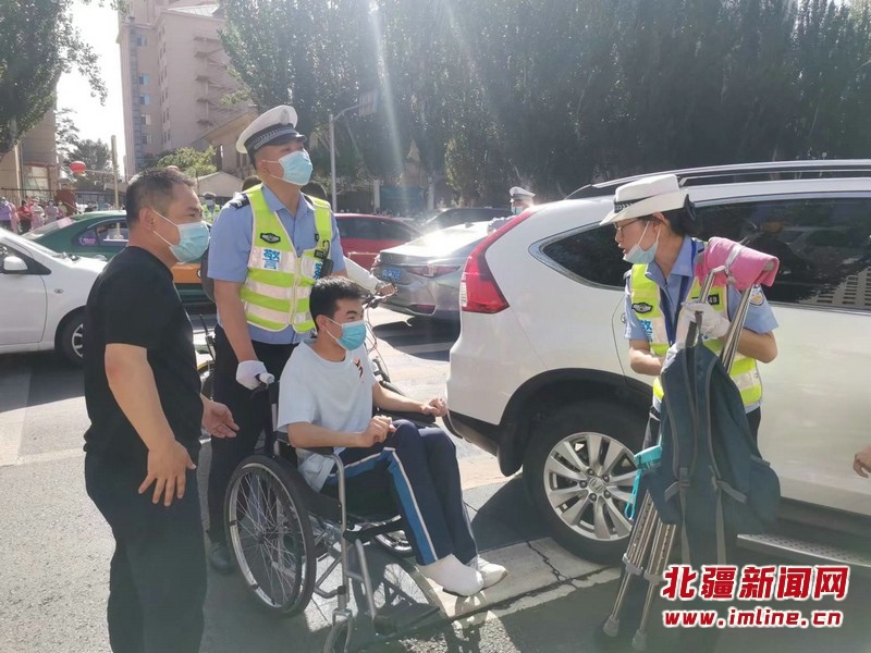現(xiàn)場最讓感動的是,一位腳扭傷的考生,在兩名交警的幫助下坐上輪椅進(jìn)入考場?!坝辛怂麄兊膸椭?,減少了我們的焦慮,心情輕松了很多,而且今天早早就來到了考場?!笨忌议L介紹,昨天看考場時(shí),交警同志得知孩子的腳扭傷后,今天特意趕來護(hù)送學(xué)生進(jìn)入考場。
