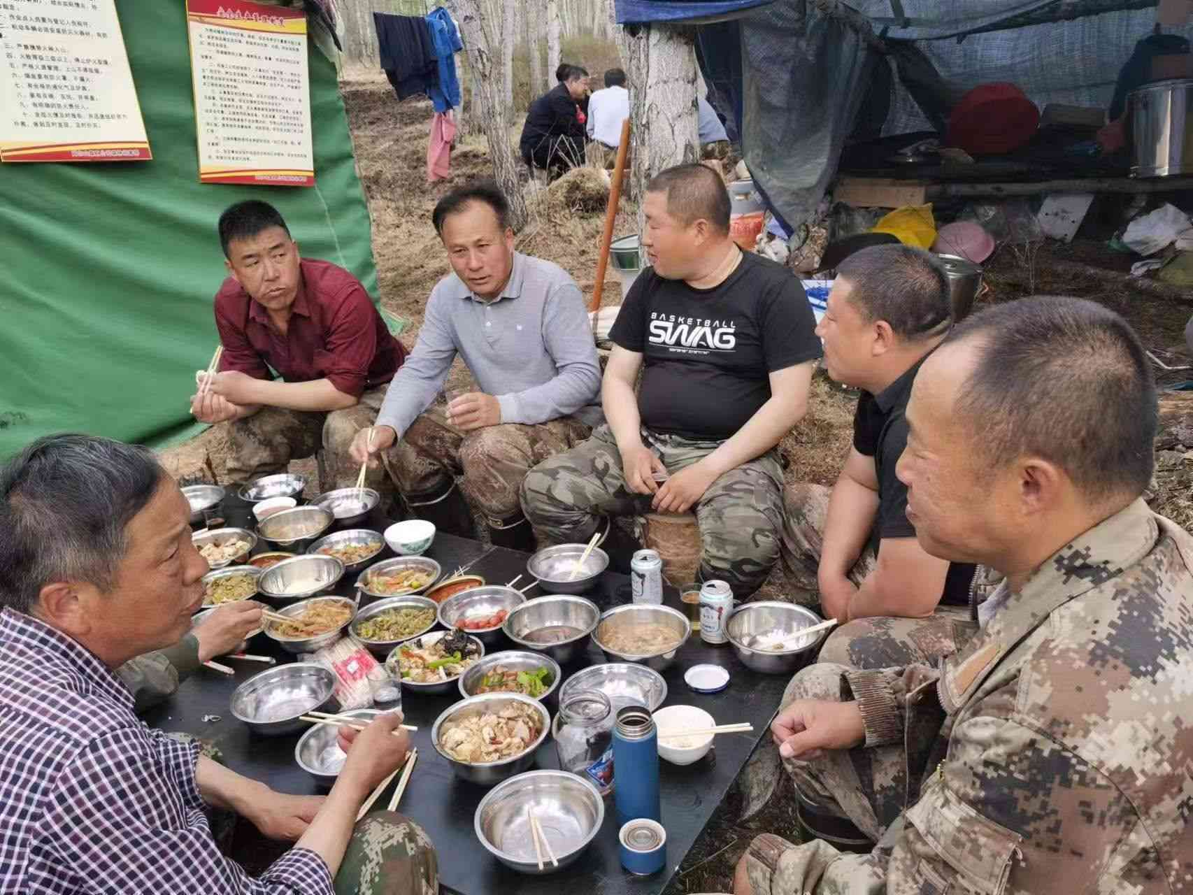 人到了,生活物資卻沒到達。入夜,林區(qū)氣溫極低,工人們只能露天“熬過”一晚?!罢欠阑鸾鋰榔冢覀儾荒軣鹑∨?。躺在潮濕的地上,冷得根本無法入睡,大家就起來跺著腳一直到天亮。”夏學兵說。第二天一大早,工人們又立即投入工作,清理草坪、打防火道、刨樹坑,為造林做著準備。“趁著土地還沒有完全解凍,先挖好樹坑,等過幾天返漿期水聚集到坑里,種下的樹苗成活率才高。錯過這個時機就很難成活,所以大家一刻都不敢耽擱。”