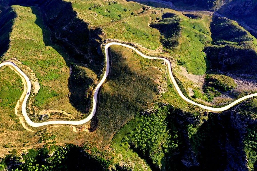一輛轎車(chē)從井爾梁盤(pán)山公路經(jīng)過(guò)