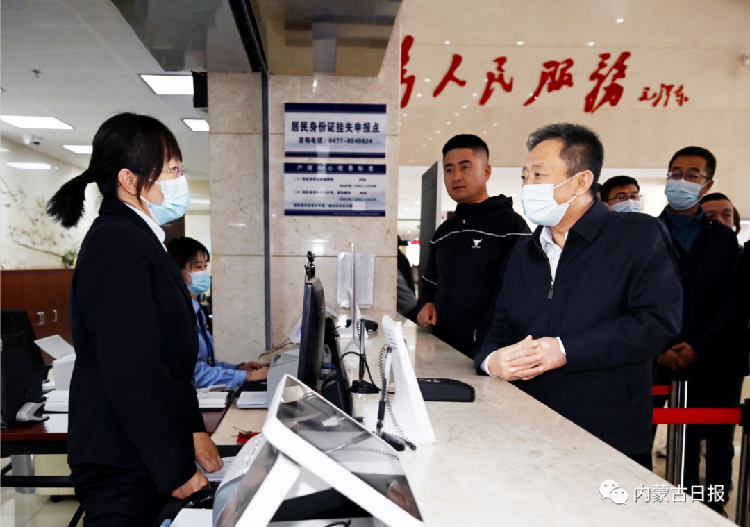 4月21日,孫紹騁在鄂爾多斯市東勝區(qū)政務(wù)服務(wù)中心向窗口工作人員詢問便民服務(wù)情況。內(nèi)蒙古日?qǐng)?bào)社融媒體記者馬建荃攝
