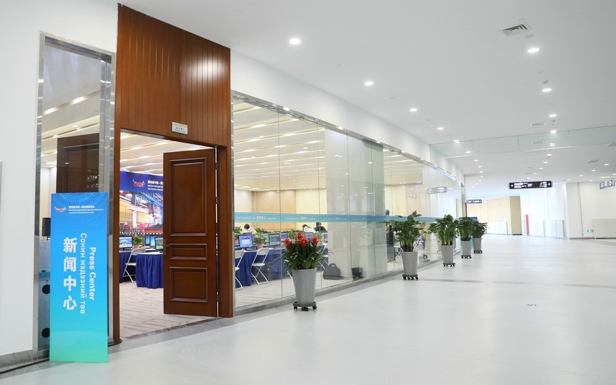 4日下午,記者在敕勒川國際會展中心2層環(huán)廊看到,新聞中心內(nèi)整齊地擺放著電腦、桌椅,兩邊茶歇區(qū),已備好零食和飲用水,供中外記者自行取用。