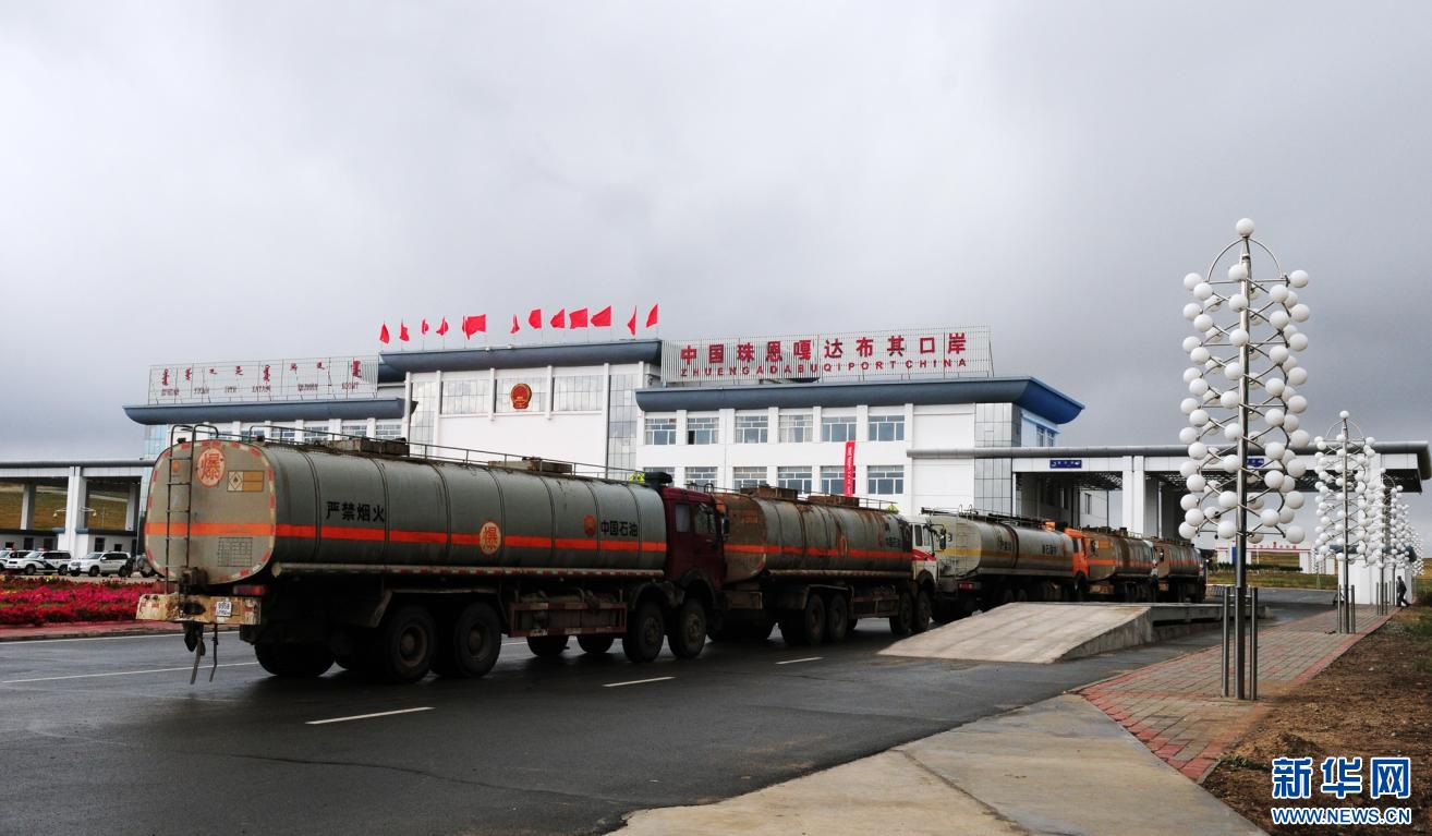 大卡車駛過珠恩嘎達(dá)布其口岸。資料圖 ??