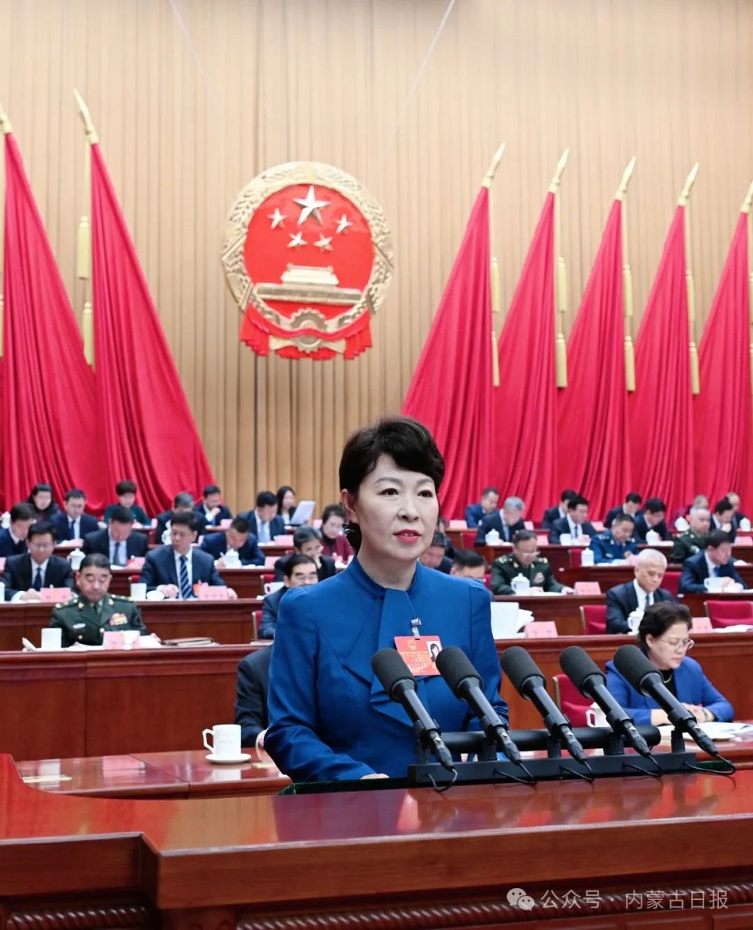 自治區(qū)主席王莉霞作政府工作報(bào)告。草原全媒·內(nèi)蒙古新聞網(wǎng)記者韓卿立攝