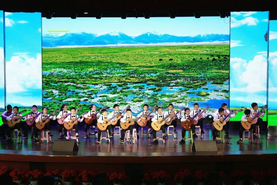 合唱《強(qiáng)國(guó)一代有我在》《祖國(guó)有我》、古典吉他合奏《天邊》、京劇《梨園薈萃》、朗誦《致敬祖國(guó)》、中國(guó)舞《碇步橋》、合唱《黨的孩子》《四季的問候》、《民族團(tuán)結(jié)英雄贊歌》、古箏齊奏《上春山》、拉丁現(xiàn)代舞《紅旗飄飄》、朗誦《你好,未來的我們》、師生舞蹈《外婆橋》、合唱《石榴籽一家親》等13個(gè)展演節(jié)目輪番上演。