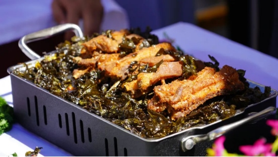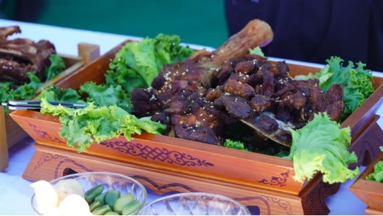烤全羊、手抓肉、肚包肉……活動(dòng)現(xiàn)場(chǎng),參賽選手們各顯神通,用他們精湛的廚藝為大家呈現(xiàn)了一場(chǎng)全羊盛宴。來(lái)自不同地區(qū)的36道羊肉系列菜,現(xiàn)場(chǎng)烹飪制作并供嘉賓、游客品嘗,評(píng)委從每道菜品的食材、烹飪方法、口味色澤、擺盤設(shè)計(jì)等方面入手,進(jìn)行現(xiàn)場(chǎng)打分排名。一道道精心烹飪的美食香飄四座,激發(fā)了現(xiàn)場(chǎng)觀眾的食欲。大家紛紛圍上前來(lái),爭(zhēng)相品嘗?!把蛉膺€有這么多的做法,真是讓人大開(kāi)眼界。”“太好吃了,羊肉都很鮮美!”現(xiàn)場(chǎng)游客無(wú)一不發(fā)出贊嘆?!?/p>