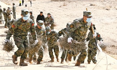 2025年5月6日《中國國防報》第1版刊發(fā)了《內蒙古巴彥淖爾軍分區(qū)發(fā)動民兵參與烏蘭布和沙漠治沙攻堅戰(zhàn) 植樹造林戰(zhàn)“黃龍”》的文章,報道了連日來,內蒙古巴彥淖爾市民兵到烏蘭布和沙漠植樹造林。為植樹造林鎖住“黃龍”,當地軍民聯(lián)手筑起了一道48公里長的綠色屏障。據氣象部門數據顯示,近年來,當地沙塵暴、干熱風、浮塵天氣年平均日數顯著下降。