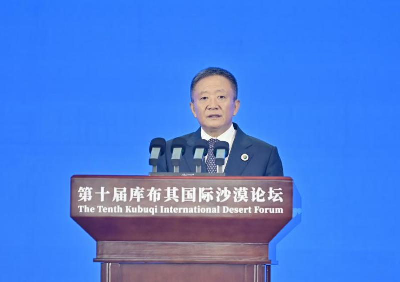 9月16日,國家林業(yè)和草原局局長劉國洪在第十屆庫布其國際沙漠論壇開幕式上致辭。草原云·內蒙古新聞網(wǎng)記者 馬建兵 攝