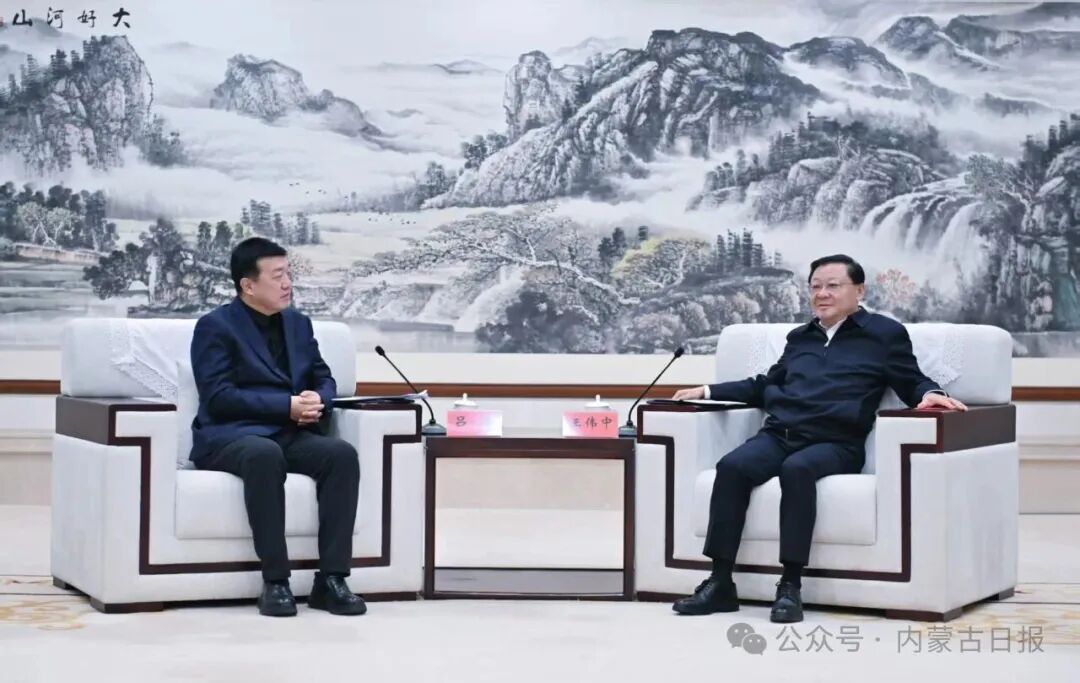 王偉中代表自治區(qū)黨委和政府歡迎呂軍一行到訪,并向他們介紹了自治區(qū)經(jīng)濟社會發(fā)展情況。他說,內(nèi)蒙古與中國大唐一直保持著良好的合作關系,我們對中國大唐長期以來給予內(nèi)蒙古的支持表示感謝。當前,我們正在深入學習貫徹黨的二十屆四中全會和中央經(jīng)濟工作會議精神,全面貫徹落實習近平總書記對內(nèi)蒙古系列重要講話重要指示精神,按照自治區(qū)黨委十一屆十次全會部署要求,大力發(fā)展現(xiàn)代能源經(jīng)濟,加快建設國家重要能源和戰(zhàn)略資源基地,這將為包括中國大唐在內(nèi)的能源企業(yè)在內(nèi)蒙古發(fā)展提供廣闊空間。希望中國大唐充分發(fā)揮自身優(yōu)勢,持續(xù)加大新能源、先進綠色高載能、綠電制氫氨醇、現(xiàn)代煤化工等領域的項目投資力度,積極在我區(qū)布局科技研發(fā)平臺,助力內(nèi)蒙古打造新質生產(chǎn)力、實現(xiàn)高質量發(fā)展。我們將持續(xù)打造市場化法治化國際化一流營商環(huán)境,為包括中國大唐在內(nèi)的各類企業(yè)發(fā)展提供優(yōu)質高效服務。
