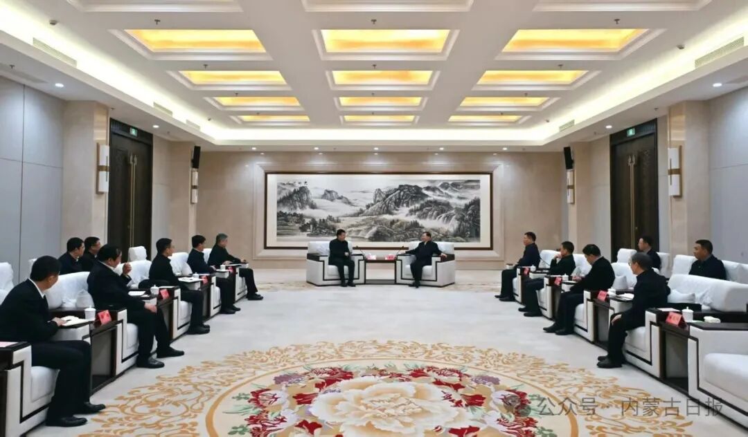 12月19日,自治區(qū)黨委書記王偉中,自治區(qū)黨委副書記、自治區(qū)人民政府主席包鋼在呼和浩特會見中國大唐集團有限公司董事長呂軍、總經(jīng)理李向良一行。