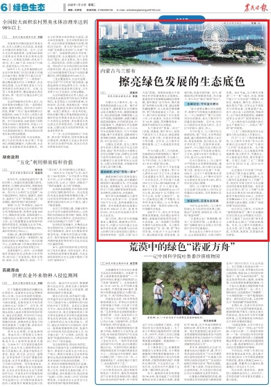 2026年1月13日,《農(nóng)民日報》2版刊發(fā)題為《內(nèi)蒙古烏蘭察布擦亮綠色發(fā)展的生態(tài)底色》的文章,報道了烏蘭察布多年來深入貫徹習近平生態(tài)文明思想,錨定“筑牢我國北方重要生態(tài)安全屏障”目標,深耕生態(tài)治理與綠色發(fā)展的成果。如今,這座北疆城市以愈發(fā)鮮亮的生態(tài)底色,讓群眾的獲得感、幸福感在綠水青山間不斷升騰。