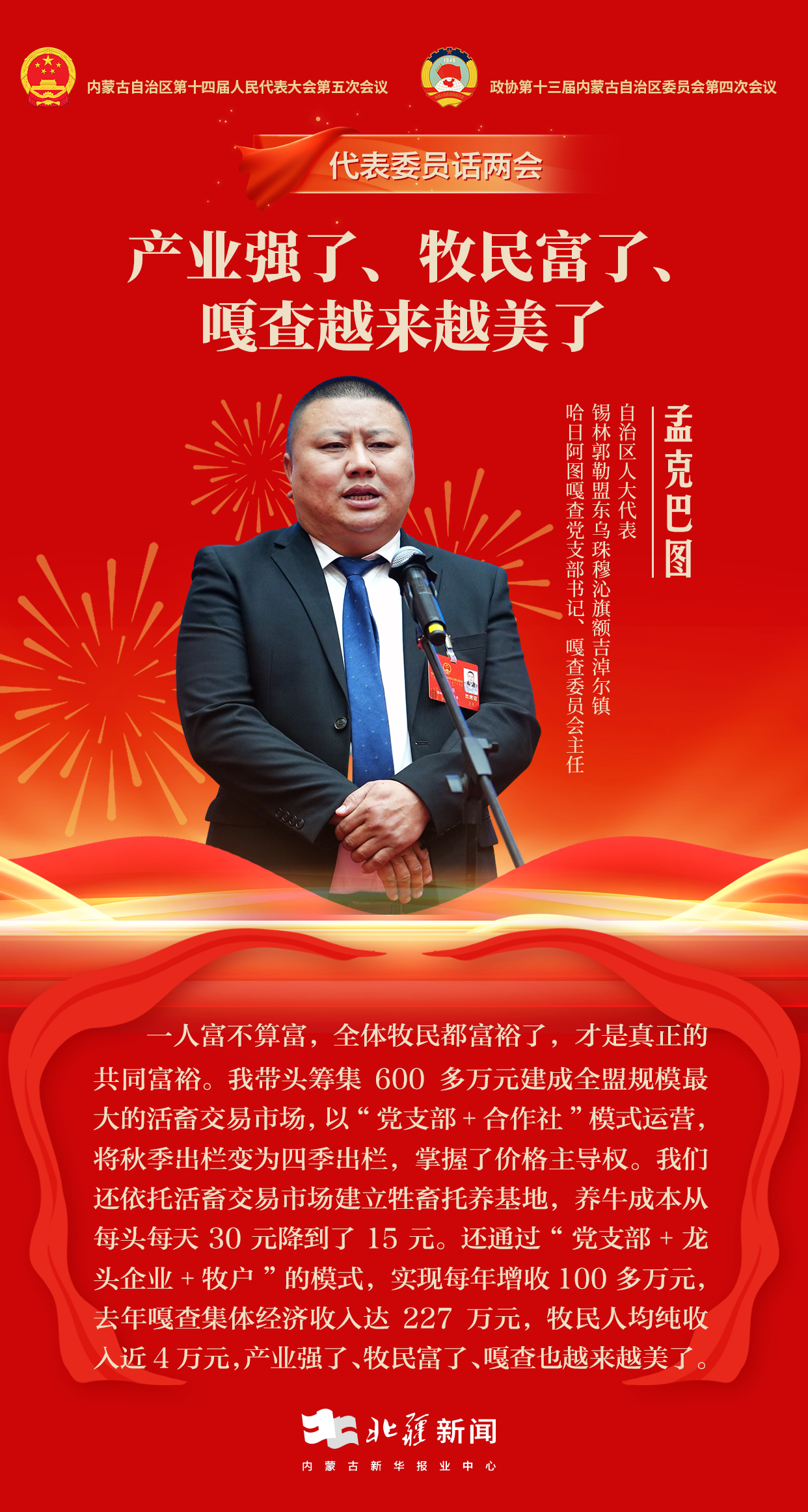 孟克巴圖說(shuō),一人富不算富,全體牧民都富裕了,才是真正的共同富裕。