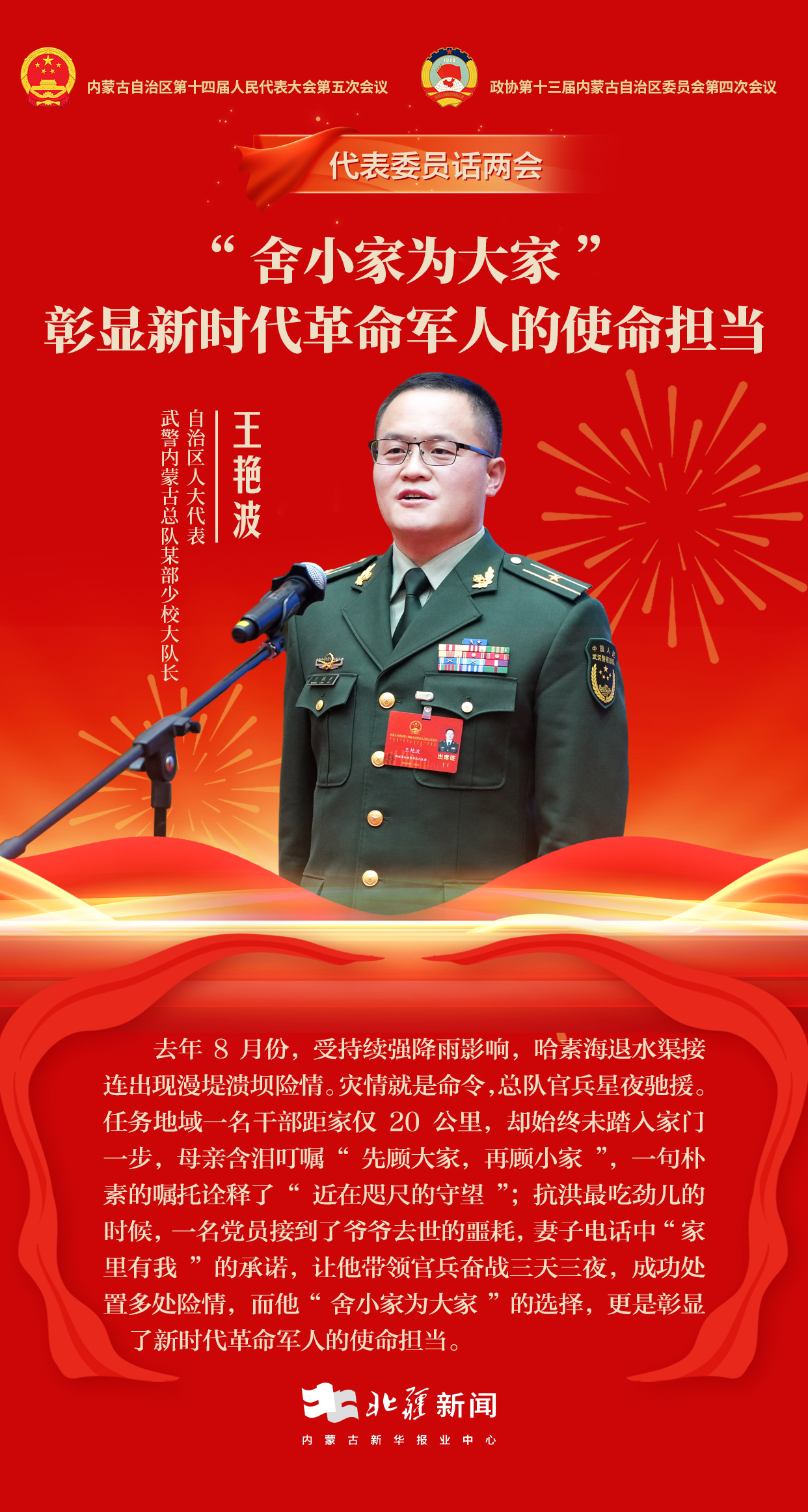 北疆新聞呼和浩特2月5日消息(記者 楊凈毓 李文華 張鑫) “作為駐守祖國北疆的武警官兵,我們心中既有練兵備戰(zhàn)的熱血記憶,更有軍民同心的溫暖感動。”2月4日,內(nèi)蒙古自治區(qū)第十四屆人民代表大會第五次會議“代表通道”上,自治區(qū)人大代表、武警內(nèi)蒙古總隊(duì)某部少校大隊(duì)長王艷波,分享了北疆衛(wèi)士練兵備戰(zhàn)、守護(hù)平安、軍民同心的難忘經(jīng)歷與使命擔(dān)當(dāng)。