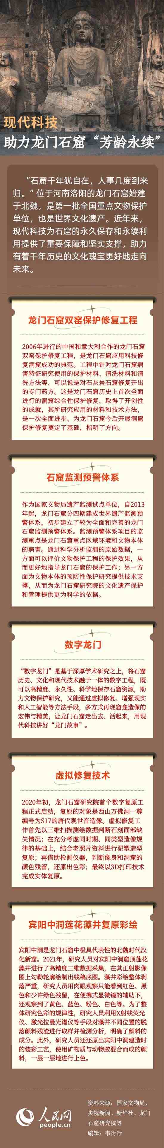 長(zhǎng)期以來(lái),不論官方還是民間,龍門石窟的保護(hù)修繕工作從未間斷。如今,多種高科技手段已經(jīng)介入到龍門石窟考古文保工作的方方面面。龍門石窟研究院黨委書(shū)記余杰表示,運(yùn)用互聯(lián)網(wǎng)思維、通過(guò)數(shù)字化形式、借助高新科技融合創(chuàng)新,龍門石窟攜帶的豐富多元文化信息,才能更好地走出去、活起來(lái),讓千年石窟盡展時(shí)代價(jià)值。