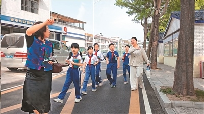 2024年10月,我來到國榮鄉(xiāng)聯(lián)合小學,與當?shù)匦W生一起,坐在秋日的暖陽下,上了一堂遺產(chǎn)教育課。作為“樓上村遺產(chǎn)教育”的組成部分,這個課程從2022年春季開始,每周開課兩次。當天的教室里,坐滿了校內(nèi)1至6年級的學生,校長、老師以及天津工業(yè)大學前來支教的2名青年教師也加入進來。剛剛從復(fù)旦大學畢業(yè)的全軼先博士擔任了線上老師,她曾在樓上村工作了兩年,進行長期駐地調(diào)研。她從二十四節(jié)氣講起,引出國家級非物質(zhì)文化遺產(chǎn)“石阡說春”的民俗文化。這個課程另一個吸引我的“亮點”,是隨后進行的課外實踐部分。小學生們非常認真地穿起講解服裝,在青年老師的帶領(lǐng)下組成講解隊,激動而略顯緊張地復(fù)習講稿,站在樓上村的一處處文化遺存前,等待為游客講述戲樓、梓潼宮、養(yǎng)正書院、天福古井的故事……