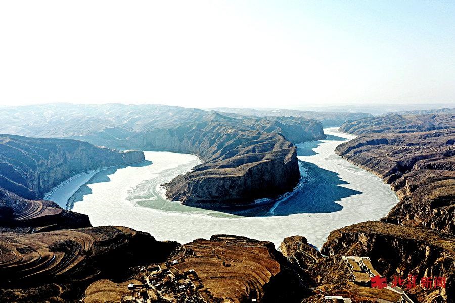 3月14日,無人機視角下的黃河喇嘛灣段。