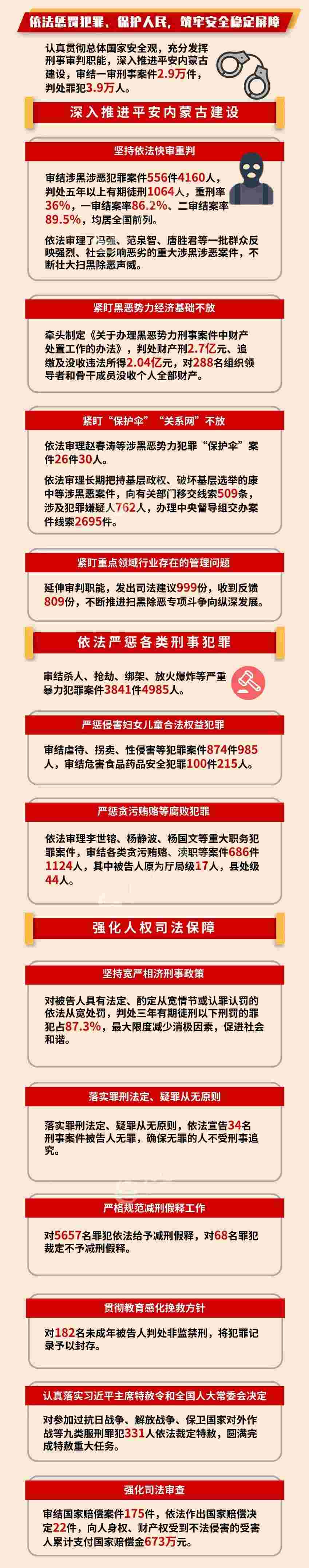 會上,內(nèi)蒙古自治區(qū)高級人民法院院長楊宗仁作《內(nèi)蒙古自治區(qū)高級人民法院工作報(bào)告》,內(nèi)蒙古自治區(qū)人民檢察院檢察長李琪林作《內(nèi)蒙古自治區(qū)人民檢察院工作報(bào)告》?!皟稍骸惫ぷ鲌?bào)告都有哪些看點(diǎn)?今年兩會,小編繼續(xù)帶您看圖說兩會。